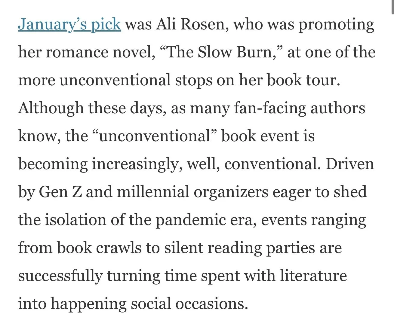 The Slow Burn was the January pick for the Preoccupied Walking Book Club. Read it here!