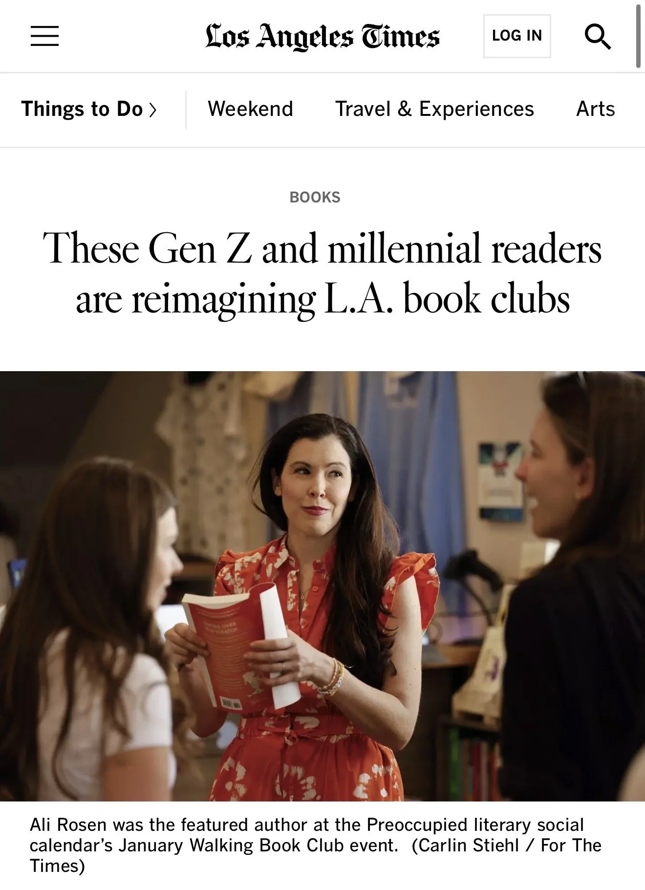 LA Times featuring the Preoccupied book club walk for The Slow Burn